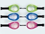 Intex Recreation 55602 Swimming Play GogglesIntex Recreation 55602 Swimming Play Goggles Features:; Polycarbonate lens for safety; Hypoallergenic polyvinyl chloride eyecup for comfortable fit; Improved head straps for more durability and flexibility; Assorted colors in Pink, Blue, and Green
